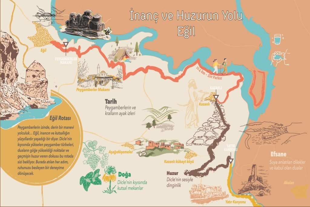 "Diyarbakır Kral Yolu’nun 351 km’lik rotasında öne çıkan 6 önemli güzergâh, tarihi dokusu, doğal manzaraları ve kültürel zenginlikleriyle keşfedilmeye değer duraklar sunuyor. Antik yolların izinden giderek geçmişin izlerini günümüze taşırken, eşsiz deneyimler vadediyor."