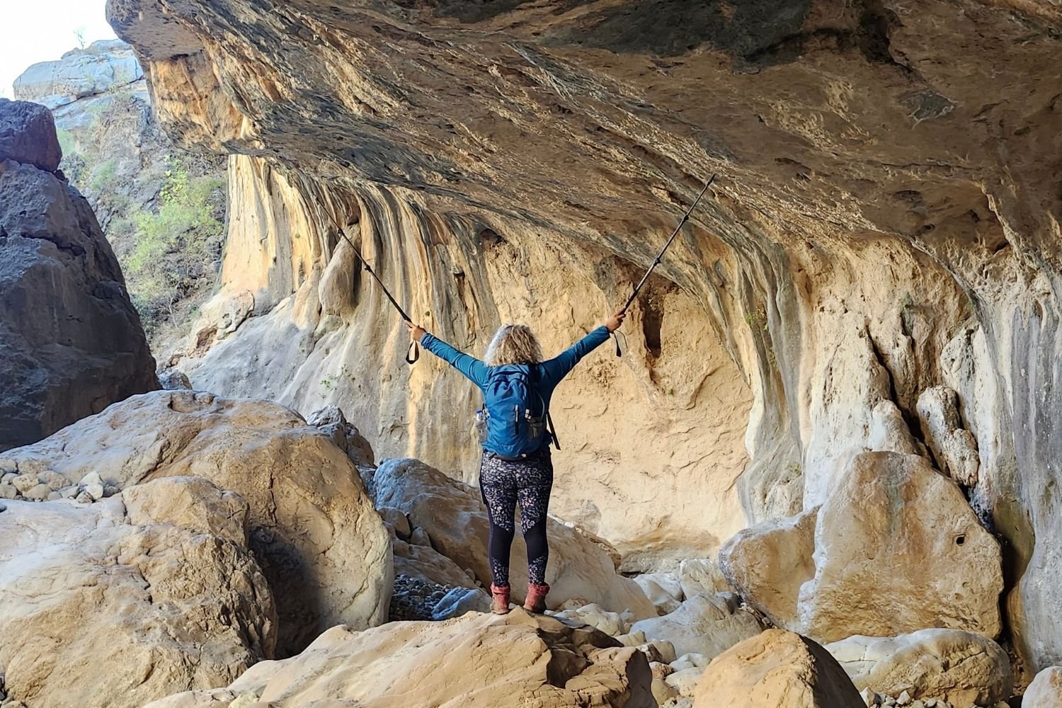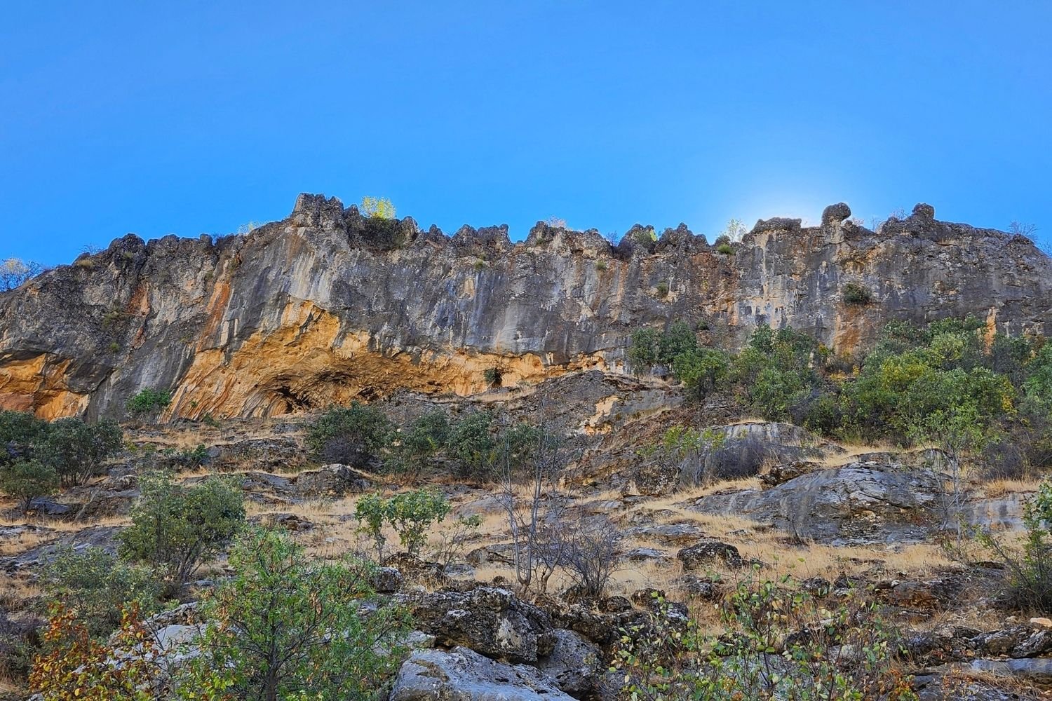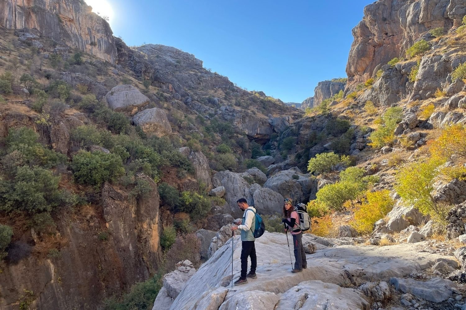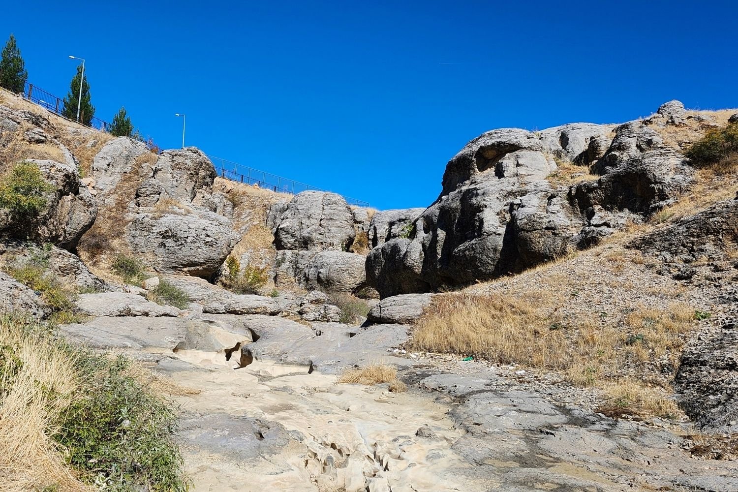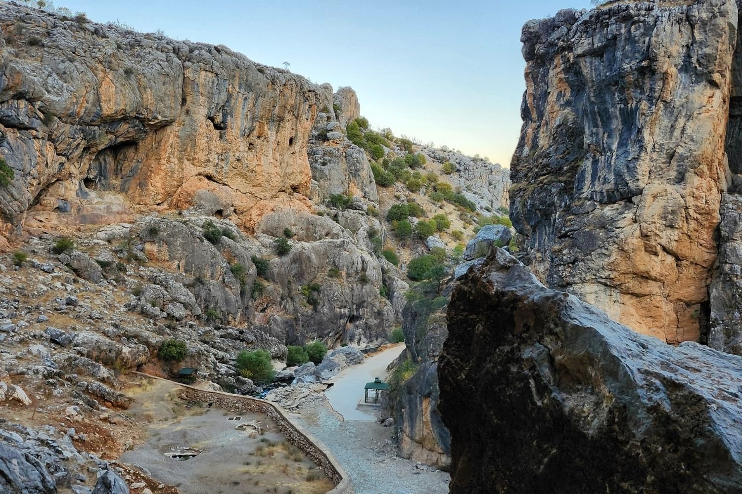 Devamında, göze üzerinden sağ ve sol yapılarak uygun olan patikalardan devam edilir. Göze üzerinden soldan devam edip, 70-80 metre yükselerek iki panorama noktasına ulaşılır. Buradaki panorama çok güzeldir; fotoğraflar çekildikten sonra, soldaki patikadan kaya yüzeyine, bolt atılmış kaya bloğunun yanından yürünerek geçilir. (Boltlu kaya bloğu; kaya tırmanış alanıdır. Bu blok yaklaşık 100 metredir ve bolt çalışması yapılmıştır. Bu rotanın tamamı sert blok kayalardan oluşmaktadır. Taş blok, kanyon sırtındadır. Kaya tırmanışı için burası ziyaret edilebilir.)