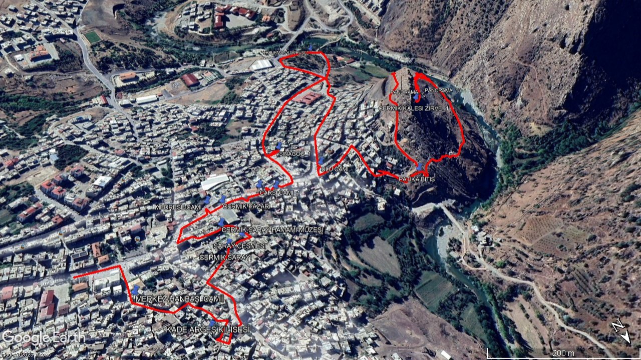 Bu rapor, Çermik’e bağlı rotalarda yürüyüş yapılacağı zaman, Çermik merkezdeki kültür envanterlerin gezilebilmesi için hazırlanmıştır. GPS verisi mevcuttur. Doğa gezileri ve kültür turları için kullanılması önerilir.