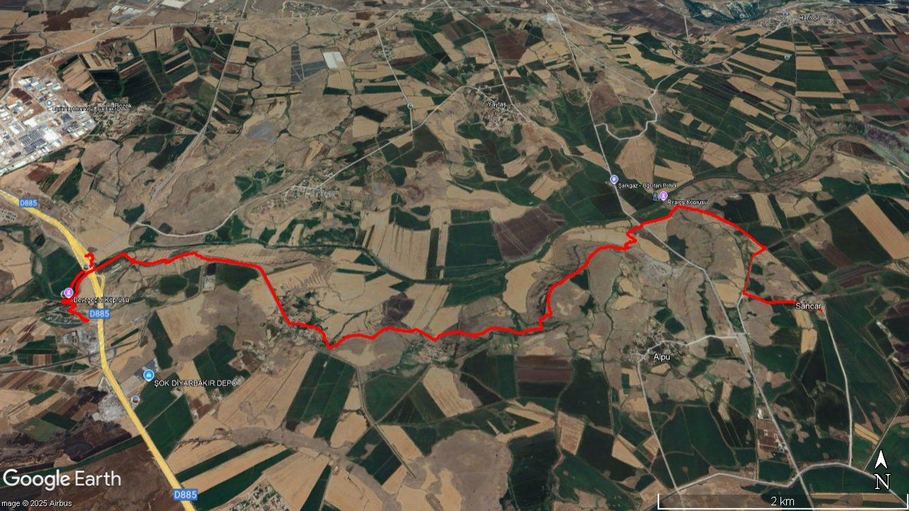 Diyarbakır Eğil yoluna girilir, Eğil’e gelmeden Sancar Köyü sapağından dönülerek taş ocağının görüldüğü noktada sola dönülür. Tarihi Karaköprü yanından yürüyüş başlar. (Araç için GPS datası vardır.)